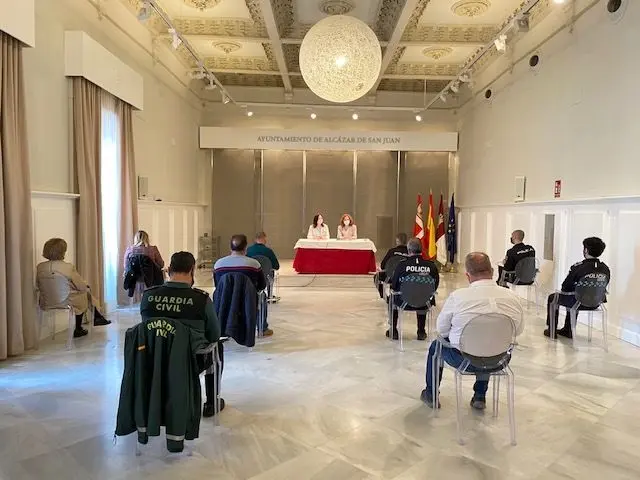 El Salón Noble del Ayuntamiento de Alcázar de San Juan ha acogido la celebración de la Junta Local de Seguridad, que se ha desarrollado respetando todas las medidas de seguridad sanitaria. En la reunión se han analizado las actuaciones que proceden poner en marcha para la próxima campaña de recolección en la EATIM de Cinco Casas.