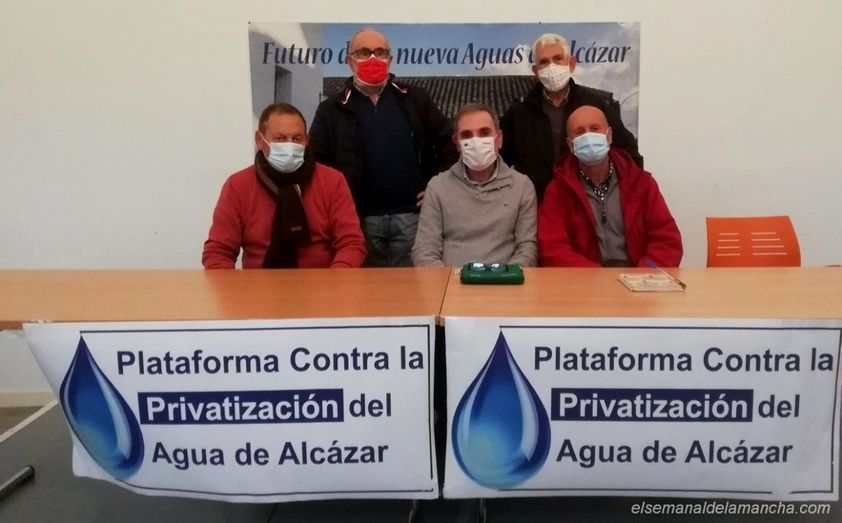 Miembros de la Plataforma Contra la Privatización del Agua en Alcázar de San Juan han comparecido esta mañana, aprovechando que el 10 de diciembre se conmemora el día de los Derechos Humanos, para recoprdar cómo "las políticas neoliberales, amparadas por leyes de la Unión Europea y el gobierno de la Nación, favorecen los procesos privatizadores del agua, dando pie al negocio de multinacionales", como ha sido el caso de esta localidad "donde hemos sufrido esta privatización durante 7 años".