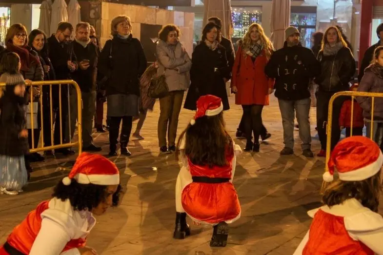 Junto al mercado, la caseta de Papa Noel, que ya está en la ciudad para escuchar las peticiones de mayores y pequeños que, desde el viernes, hacen cola para pasar unos momentos con Santa. La Escuela de Danza de Alma María García amenizó con baile la llegada del viejo elfo.