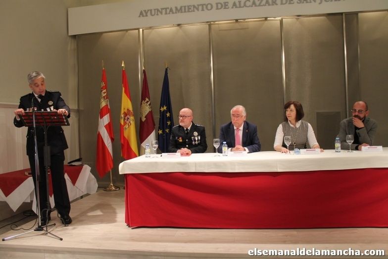 La Policía Local de Alcázar de San Juan está celebrando este martes la festividad de su patrón, el Santo Ángel de la Guarda, a través de un acto en el salón de actos del Ayuntamiento en el que ha quedado patente la mejora de las condiciones y recursos de la Policía Local, que comenzó la legislatura anterior con 41 agentes y ahora tienen 47, a lo que hay que sumar la entrada, en unos meses, de tres más, actualmente en prácticas, así como la próxima compra de un coche y un radar.