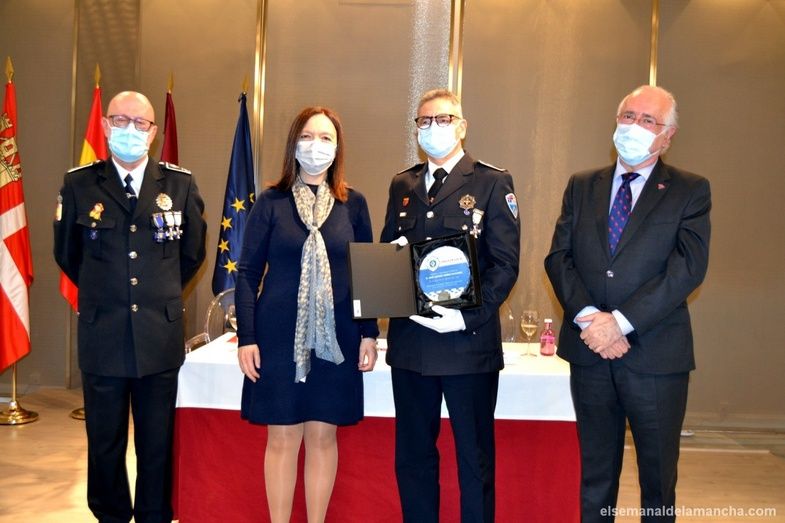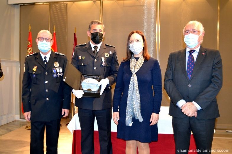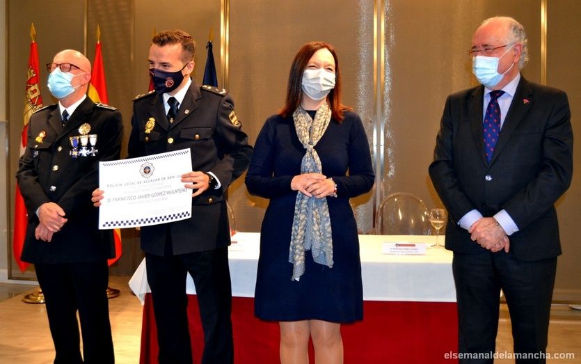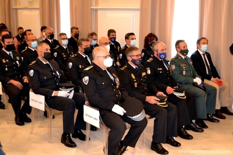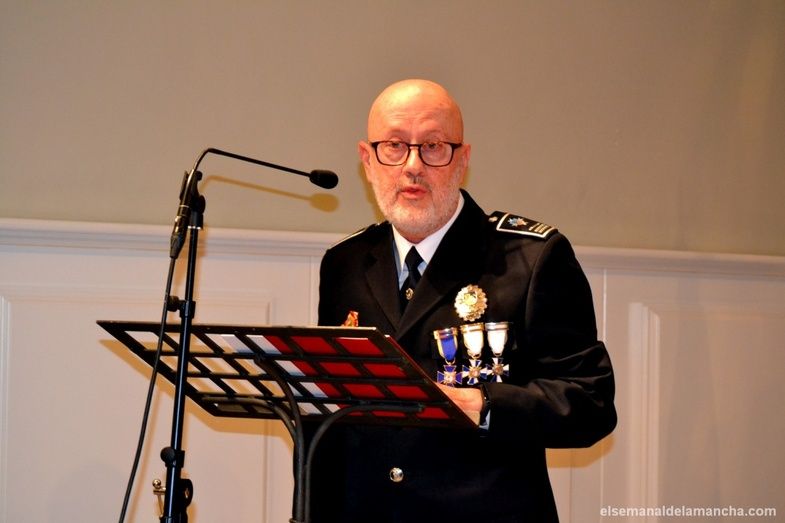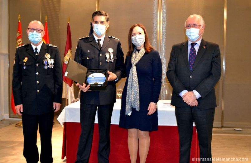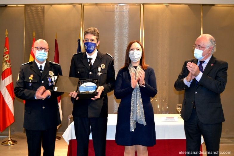 este Cuerpo de Seguridad nació en Alcázar de San Juan "de la mano del ferrocarril", allá por 1860. Sesenta y dos años de historia con dos ejercicios marcados especialmente por la pandemia en marzo de 2020, que Martínez ha querido subrayar. "Cuando el 14 de marzo fue declarado el Estado de Alarma llegó una anormalidad constitucional que era totalmente necesaria", en la que el trabajo de policías, guardias civiles, protección civil, emergencias se hizo más necesario que nunca, "a pesar de que al principio, también todos nosotros padecimos el mismo mal, con policías contagiados por el Covid, semanas e incluso meses en la UCI, pasándolo muy mal...". Jornadas duras que Martínez ha querido recordar para agradecer de forma especial el papel de los sanitarios, personificado en Lucas Salcedo, gerente del hospital La Mancha Centro; y Javier Castellanos, director de Enfermería, a quienes el jefe de Policía ha querido reconocer públicamente su trabajo y plena dedicación "en aquellos días, semanas y meses tan críticos".