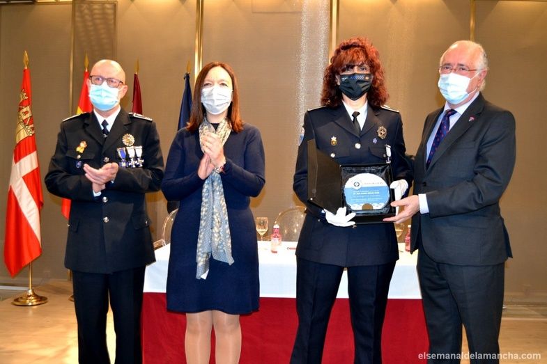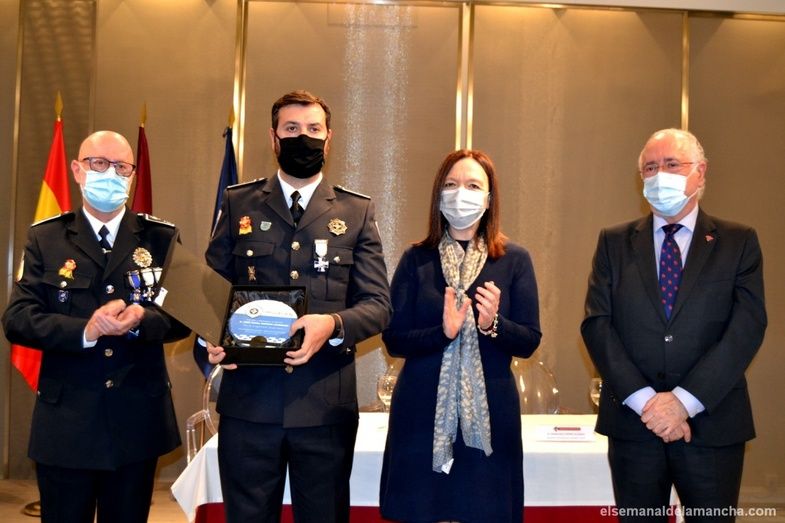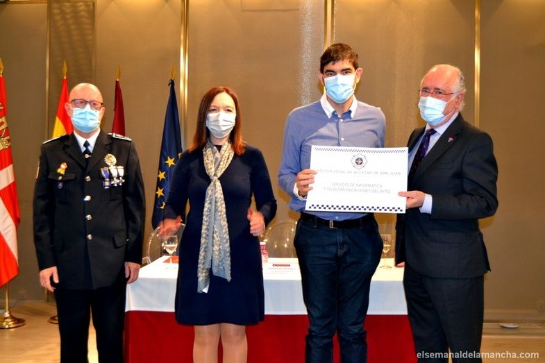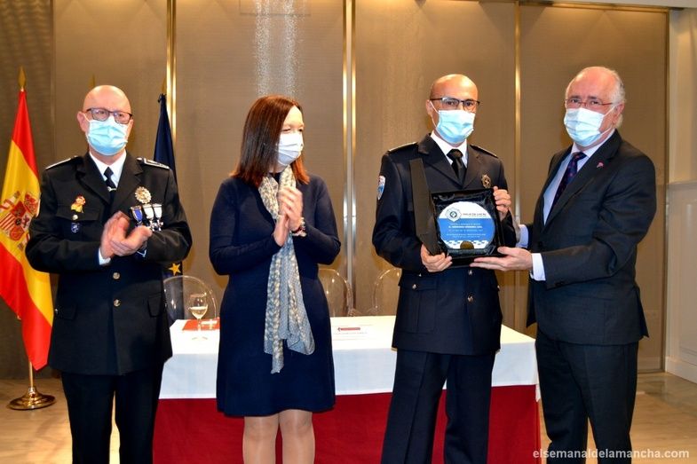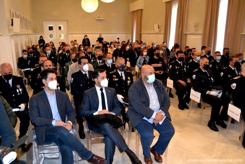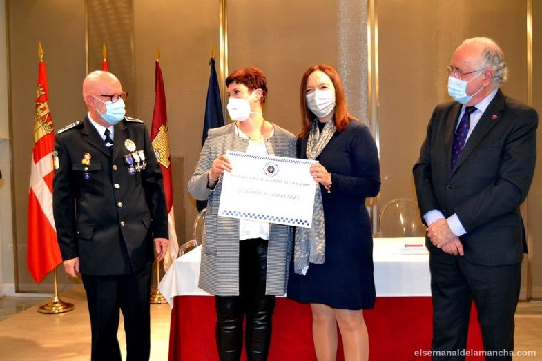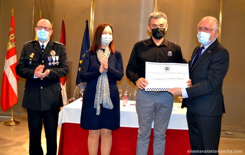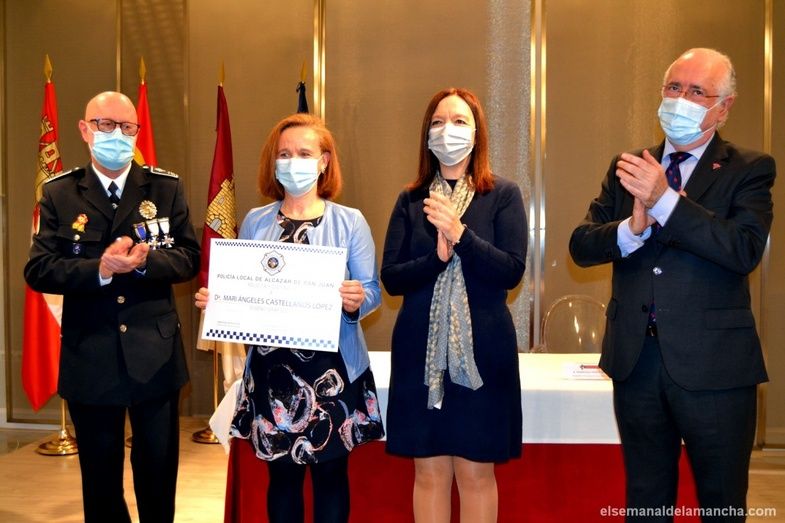 este Cuerpo de Seguridad nació en Alcázar de San Juan "de la mano del ferrocarril", allá por 1860. Sesenta y dos años de historia con dos ejercicios marcados especialmente por la pandemia en marzo de 2020, que Martínez ha querido subrayar. "Cuando el 14 de marzo fue declarado el Estado de Alarma llegó una anormalidad constitucional que era totalmente necesaria", en la que el trabajo de policías, guardias civiles, protección civil, emergencias se hizo más necesario que nunca, "a pesar de que al principio, también todos nosotros padecimos el mismo mal, con policías contagiados por el Covid, semanas e incluso meses en la UCI, pasándolo muy mal...". Jornadas duras que Martínez ha querido recordar para agradecer de forma especial el papel de los sanitarios, personificado en Lucas Salcedo, gerente del hospital La Mancha Centro; y Javier Castellanos, director de Enfermería, a quienes el jefe de Policía ha querido reconocer públicamente su trabajo y plena dedicación "en aquellos días, semanas y meses tan críticos".