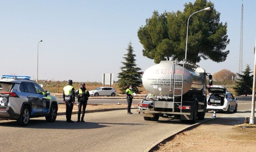 La Policía Local de Alcázar de San Juan está llevando a cabo esta semana controles para la vigilancia de camiones y autobuses, dentro de una campaña puesta en marcha desde la Dirección General de Tráfico (DGT) desde el pasado lunes hasta el domingo. En las imágenes, el control instalado esta mañana en uno de los accesos a la rotonda de los institutos (antigua N420, salida a ITV).
