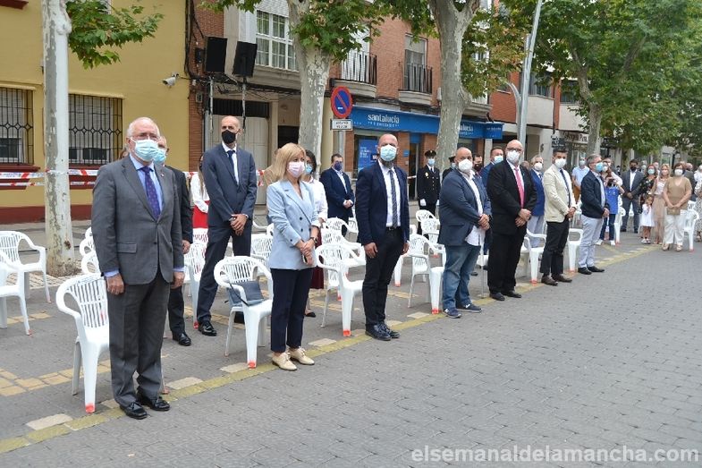 Entre ambas intervenciones, ha tenido lugar un sentido homenaje a los caídos de azul y a todas las personas que han perdido la vida durante la pandemia. La alcaldesa y el comisario han sido los encargados de depositar una corona de laurel ante el altar dispuesto en la calle con las banderas e imagen de los Santos Ángeles Custodios. El homenaje ha concluído con la entrega de un cuadro por parte del jefe de Seguridad del Hospital, José Luis Esteban; así como con varias piezas musicales a cargo de la Banda de Música, entre ellas el himno de la Policía Nacional, interpretado por el cantante criptanense Luis Muñoz.
