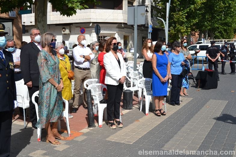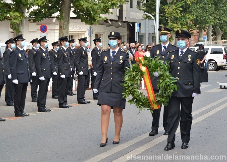 El homenaje ha contado con la presencia de prácticamente toda la plantilla de la Policía Nacional de Alcázar de San Juan, alcaldes de la comarca, autoridades institucionales, representantes de la sociedad civil y del resto de Cuerpos de Seguridad, servicios de Emergencia, Protección Civil, Banda de Música, familiares, invitados y público en general. Antes de la entrega de reconocimientos, la alcaldesa, Rosa Melchor, ha pasado revista junto al Inspector Jefe de Policía Nacional en Alcázar de San Juan, Julián Maroto.