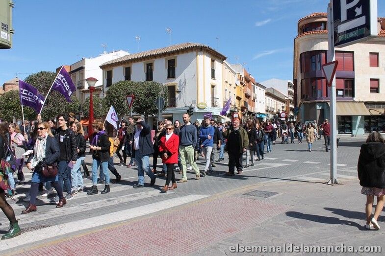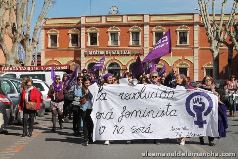 Las calles de Alcázar de San Juan se han llenado este mediodía del color morado en la manifestación convocada por la Asamblea Feminista 7N con motivo de la celebración del Día Internacional de la Mujer, en la que, bajo el lema “La revolución será feminista o será”, cerca de mil personas han participado de la misma, que ha salido de la estación del ferrocarril y ha terminado en la Plaza de España.