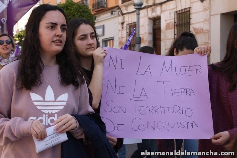 Muchos han sido los lemas y cánticos escuchados en esta jornada en la que se reivindica fundamentalmente la igualdad entre hombres y mujeres. “Ni la mujer ni la Tierra son territorio de conquista”, "Sola o borracha quiero llegar a casa", “Somos el grito de las que ya no están”,”Por nuestras muertas toda una vida de lucha”, “No nací mujer para morir por serlo”, “El patriarcado me da patriarcadas” o “Tu machismo me hace Voxmitar” han sido algunos de los mensajes lanzados este domingo festivo en Alcázar de San Juan.