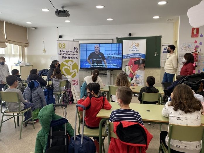 El CEIP Jesús Ruiz fue el punto de partida de la campaña de sensibilización en centros escolares, centrada este año en las discapacidades físicas adquiridas, en la que colabora ASMICRIP (Asociación de Discapacitados Físicos de Campo de Criptana y comarca).