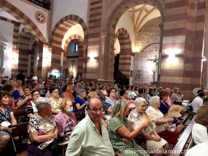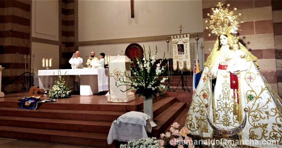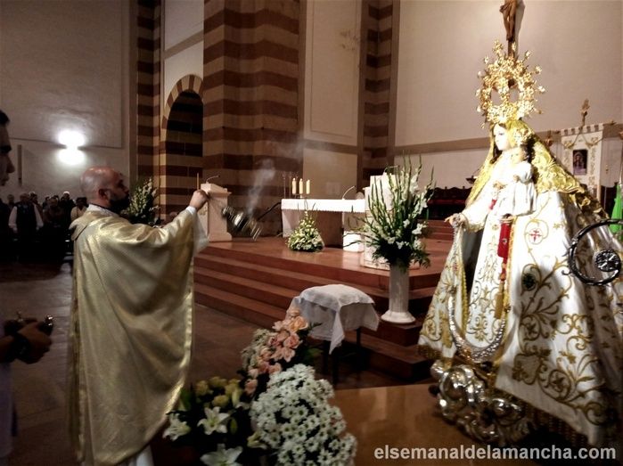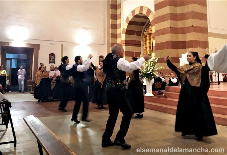 Ayer, la imagen de la Virgen permaneció expuesta para veneración de los fieles, prácticamente todo el día. Por la tarde, tras el rezo del rosario, tuvo lugar una Misa Manchega ofrecida por los coros y danzas (ver fotografías) y la quema de fuegos artificiales (llevada a cabo en el pretil de la Trinidad).