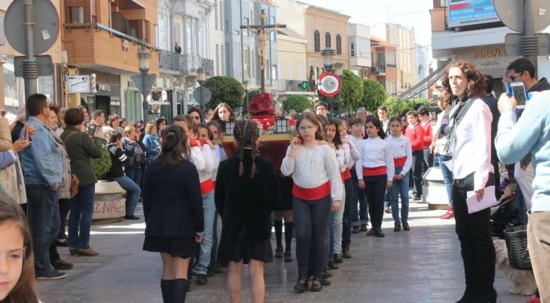 La procesión ha sido del colegio a las 11:30 horas y ha recorrido el siguiente itinerario: calle Corregidor, Ramón y Cajal, Castelar (hacia arriba), Negrita, plaza Barcelona, Magdaleno García Alcañiz, Corregidor y colegio.
