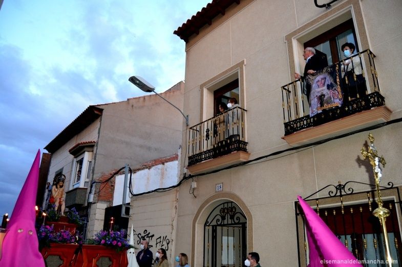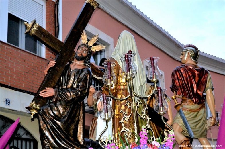 A la misma hora que la procesión de los Ferroviarios, sobre las ocho y media de la tarde, ha salido del templo de San Francisco la procesión de Jesús Caído, la Verónica y La Dolorosa.