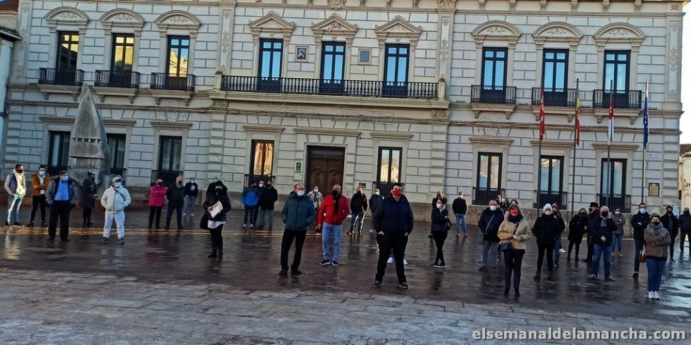 Lo que en un principio era un comunicado público del sector de la hostelería de Alcázar de San Juan, este lunes en la Plaza de España, se ha convertido en una concentración silenciosa de los hosteleros de la ciudad donde han denunciado “la soledad y el abandono” al que están abocado desde que se inició la pandemia.