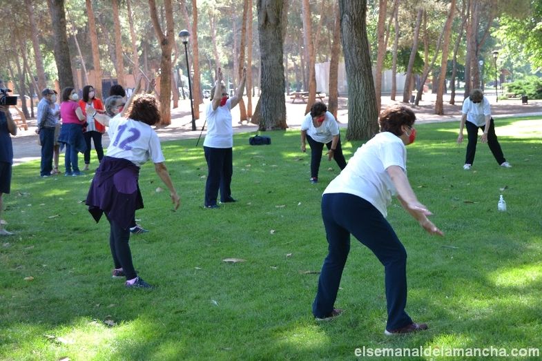 El Centro de Mayores de Alcázar de San Juan ha dado por finalizado esta mañana el programa de hábitos saludables al aire libre , con una actividad física en el parque Alces en la que han participado alrededor de veinte mayores. Socias del centro en su mayoría que han recibido la visita de la alcaldesa, Rosa Melchor; y del presidente del Consejo de Mayores, Matías López; así como de la directora del centro, Olga Rivas.