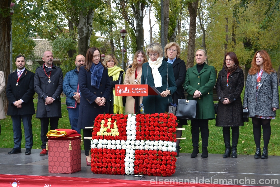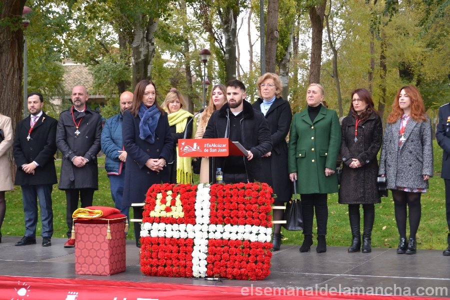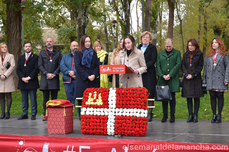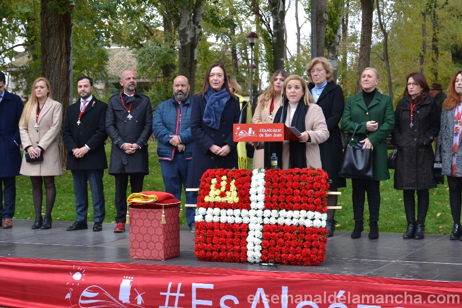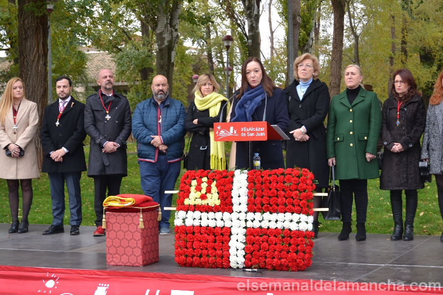 El acto se ha desarrollado con la estructura habitual: en primer lugar, periodistas y representantes de los medios de comunicación han dado lectura a varios artículos de la Constitución, acompañados por la alcaldesa Rosa Melchor quien también ha participado en la lectura refiriéndose al derecho a la información y a la libertad de expresión de todos los españoles gracias a la democracia. Y en segundo lugar, tras portar la bandera hasta la rotonda de la Constitución, ha tenido lugar la tradicional ofrenda, con el escudo de flores de Alcázar y el izado de la bandera nacional, por parte de la alcaldesa.