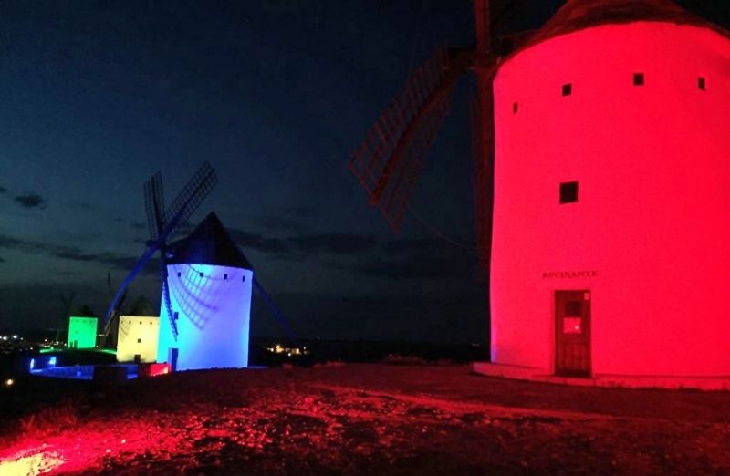 Desde que se inaugurara la iluminación en los Molinos de Alcázar de San Juan, el Ayuntamiento de nuestra ciudad ha querido manifestar su compromiso y solidaridad iluminando los molinos con diferentes colores que representan reivindicaciones y lucha por diferentes causas.