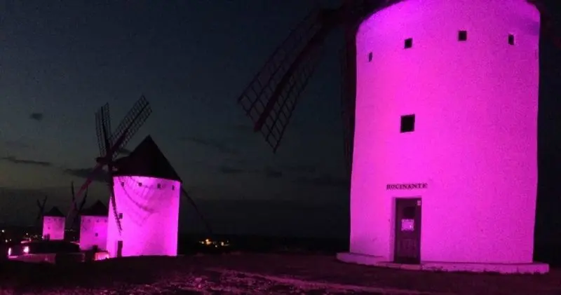 Los molinos de viento de Alcázar de San Juan lucirán este jueves, 19 de octubre, de color rosa en conmemoración al Día Internacional contra el Cáncer de Mama. Así se desprende del calendario lumínico fijado por el Ayuntamiento de Alcázar de San Juan para los próximos días.