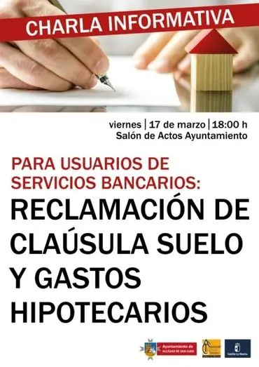 En la charla informativa que está dirigida al público en general y sobre todo a aquellas personas que tengan hipoteca, se ha previsto la intervención de Alejandro Salcedo Aznal, Coordinador Regional de Consumo de Castilla La Mancha, Santiago García-Cervigón Torrijos, Director de la OMIC de La Solana, Manuel Martínez de Paz, Técnico de la OMIC de Tomelloso y Gema María Valiente Roncero, Responsable de la OMIC de Daimiel.