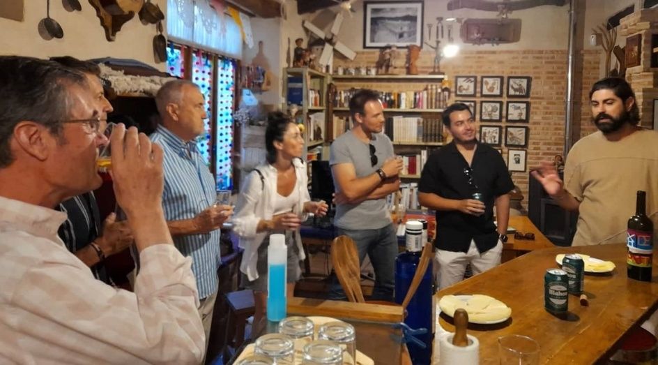 Mientras degustaron el vino “Hideputa” y un aperitivo de queso manchego, los músicos adelantaron a los cervantistas alcazareños el contenido del concierto y cómo había sido el proceso de elaboración de sus temas musicales, inspirándose directamente en la lectura del Quijote, metiéndose en los personajes y tratando de averiguar lo que pasaba por la cabeza del escritor al crear los personajes y las aventuras en que se ven inmersos. Los cervantistas pusieron a disposición de Fran y Stefan sus recursos habituales, artículos, estudios, documentación, etc… que les pueda ayudar a seguir trabajando en su interpretación musical del Quijote.