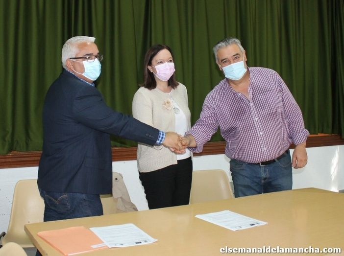 El presidente del Grupo de Acción Local Mancha Norte, Carlos Ortiz, y la alcaldesa de Alcázar de San Juan, Rosa Melchor, han firmado este lunes un convenio de colaboración para financiar el nuevo vallado de la piscina de la pedanía alcazareña de Alameda de Cervera, cuyo alcalde, José Ángel Jiménez Castellanos, también ha estado presente en el acto.