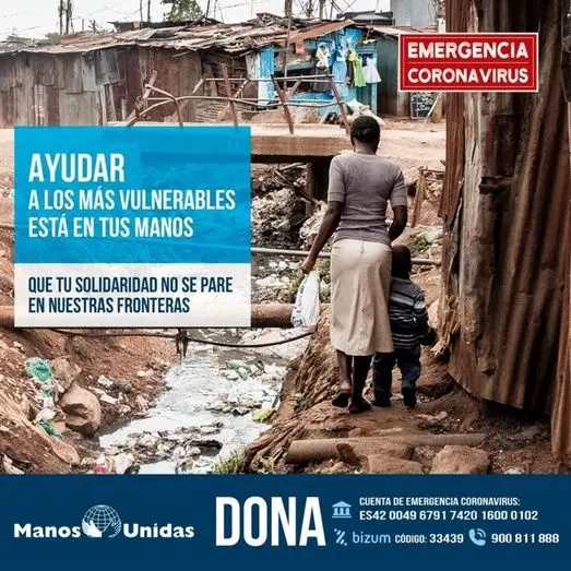 Con motivo de la crisis del coronavirus, Manos Unidas ha abierto una cuenta de emergencia para responder a las peticiones de ayuda que está recibiendo desde muchos de los casi 60 países en los que trabaja. La ONG de la Iglesia católica ha destinado ya más de 700.000 euros de sus fondos a proyectos tendentes a paliar las consecuencias que la pandemia de coronavirus está teniendo entre los más desfavorecidos.