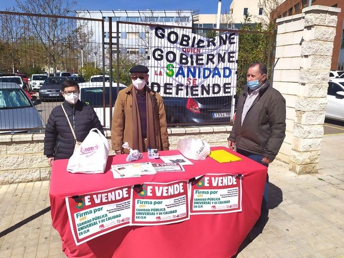 Izquierda Unida de Alcázar de San Juan, coincidiendo ayer, 7 de abril, con la conmemoración del Día Mundial de la Salud, instaló una mesa por la mañana en la entrada a las Consultas Externas del Hospital Mancha-Centro para recoger firmas entre la población, con la colaboración de militantes y simpatizantes, así como con el apoyo de miembros de la Asociación Luz de la Mancha.