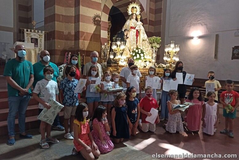 La Parroquia de Santa Quiteria de Alcázar de San Juan ha acogido este domingo la celebración de los concursos infantiles organizados por la Archicofradía de la Virgen del Rosario, el XIX Concurso de Dibujo Infantil “Así vemos a María” y el XIX Concurso Literario Infantil “Te pedimos y queremos María”. En total, han participado unos 30 niños, una acogida inferior a la de la última edición, la de 2019, ya que el pasado año no se pudo celebrar.
