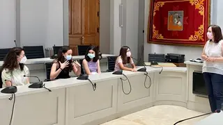 La alcaldesa de Alcázar de San Juan, Rosa Melchor, ha recibido en el Salón de Plenos a las alumnas ganadoras de la fase autonómica del concurso del Ministerio de Consumo, Consumópolis, en la categoría de primer y segundo curso de Educación Secundaria Obligatoria.