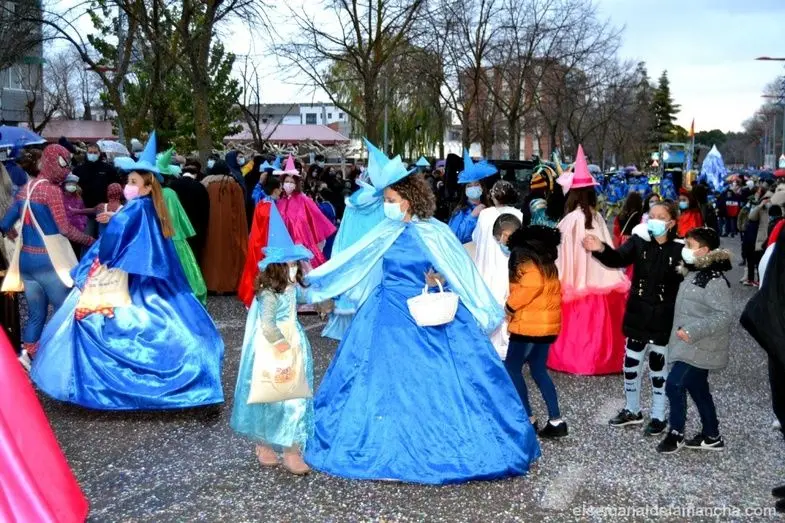 Abriendo el desfile, los personajes de Animación Chiquishow, seguidos de los Carteros Reales, la Escuela de Folclore, la charanga los Deskara2, los alumnos y familias del colegio Jardín de Arena, las Escuelas de Danza de Alma María García y Espirit Dance Studio y la paquetería de Animalcázar.