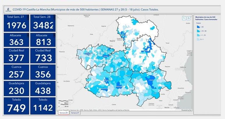 Los positivos por Covid-19 han vuelto a subir en la última semana de seguimiento epidemiológico en varios municipios de La Mancha, según datos facilitados este jueves por la Consejería de Sanidad relativos a las semanas 27 (del 5 al 11 de julio) y 28 (del 12 al 18 de julio).