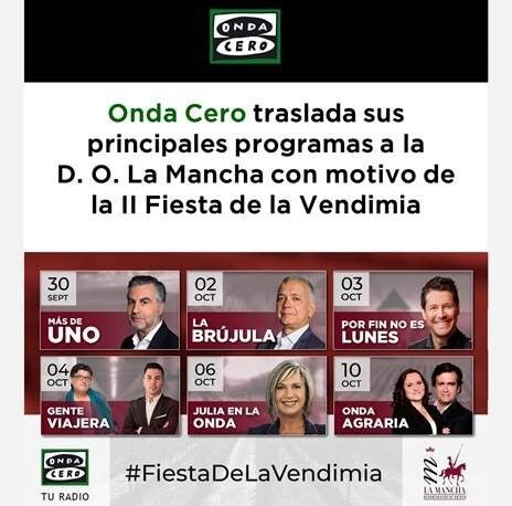 Onda Cero traslada sus principales programas a la D. O. La Mancha con motivo de la II Fiesta de la Vendimia