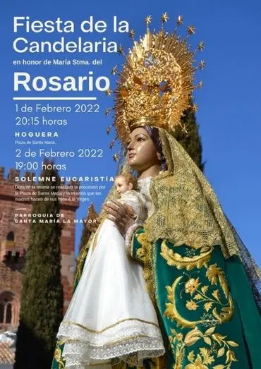 La Archicofradía de la Virgen del Rosario de Alcázar de San Juan ha organizado diferentes actividades y cultos para celebrar la festividad de La Candelaria, el 2 de febrero, que darán comienzo este martes, 1 de febrero, con la hoguera en la Plaza de Santa maría a las 20:15 horas.