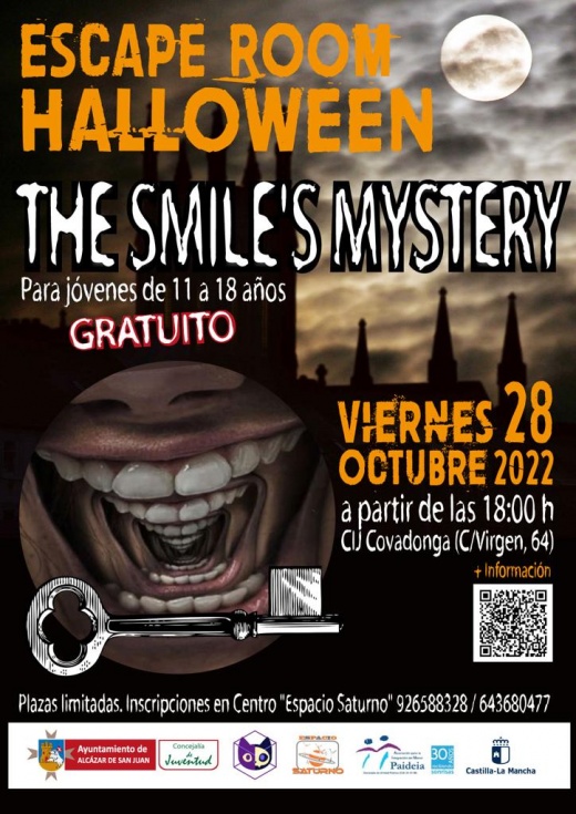 titulada “The Smile’s Mystery”, basada en la película de terror actual “Smile”, que tendrá lugar el viernes 28 en el Centro Joven Covadonga a partir de las 18h. Esta escape room está destinada para jóvenes entre 11 y 18 años, los cuales se juntarán en grupos de cuatro para la actividad.