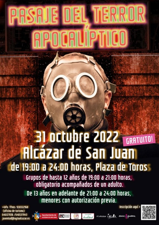La segunda actividad, de la que ha informado el concejal de Festejos, Benjamín Gallego, consistirá en un pasaje del terror apocalíptico, situado en la Plaza de Toros, el próximo día 31 desde las 19h hasta las 00h de la noche. En este pasaje del terror podrán participar personas de todas las edades, siendo obligatorio ir acompañado de un adulto de 0 a 12 años y, a partir de 12 años, con una autorización para los menores. La dinámica será a través de grupos entre cuatro y ocho personas. En primer lugar, los niños disfrutarán de un pasaje más leve y posteriormente, los adultos podrán disfrutar de un pasaje más terrorífico. Este pasaje lo hará la empresa de arte y espectáculos “El Mono Sin Pelo” y colaborarán con algunos de los alumnos de la escuela de teatro de nuestra localidad.