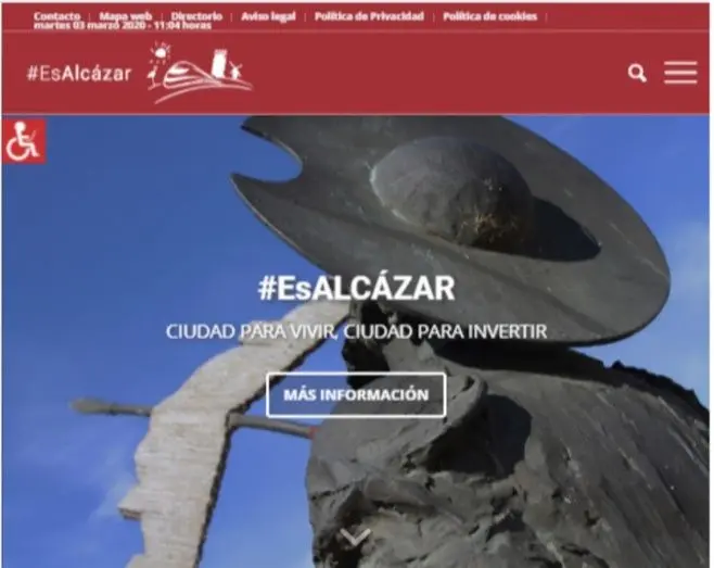 Arriba aparecen seis secciones: Inicio, Tu ayuntamiento, Alcázar, Áreas, Sede electrónica y, El ayuntamiento y tu.
