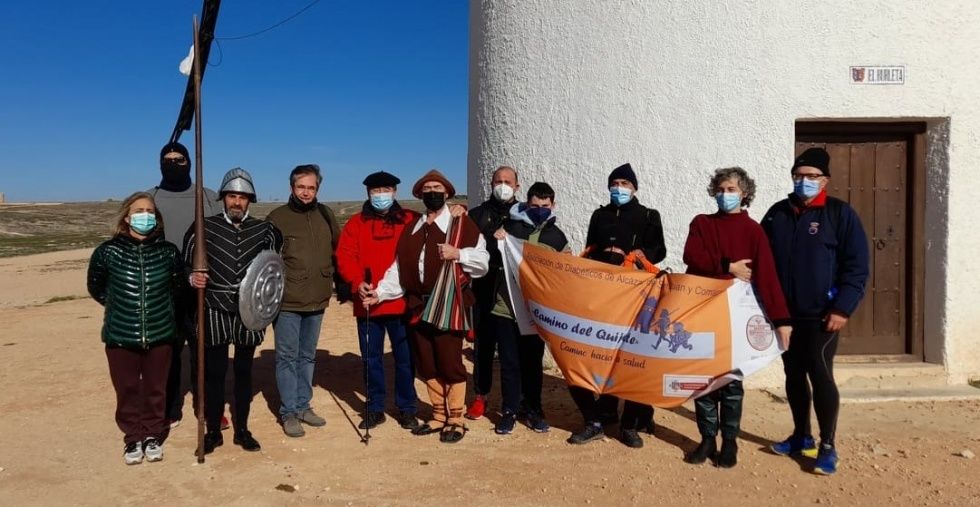 En una mañana más soleada de lo esperado, aunque con ligero viento solano en contra, los participantes del primer “Camino del Quijote, camino de salud” finalizaron en los molinos de Campo de Criptana, la ruta que habían comenzado en el hotel Ínsula Barataria de Alcázar de San Juan.