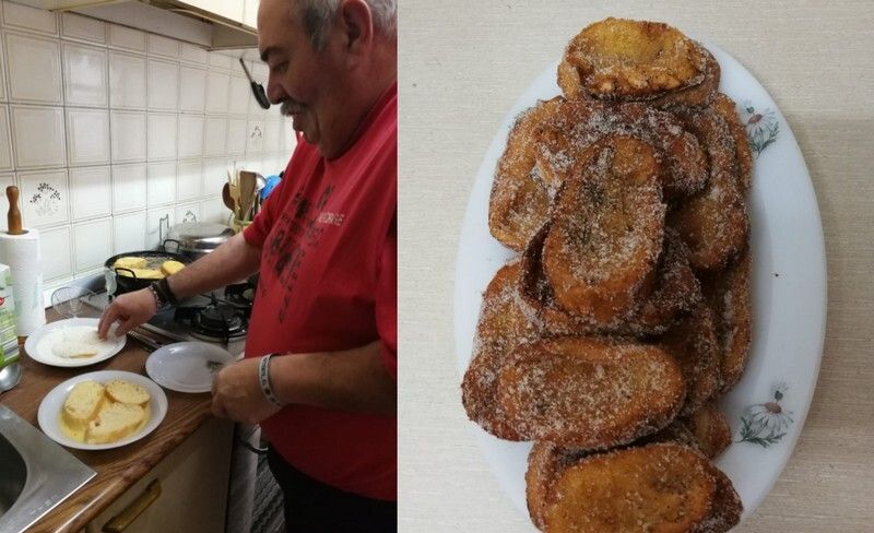 En la casa de nuestro compañero Checa la tradición manda, y la elaboración de las torrijas y posterior degustación le ha ha llevado a pasar parte del confinamiento en esta tarea.