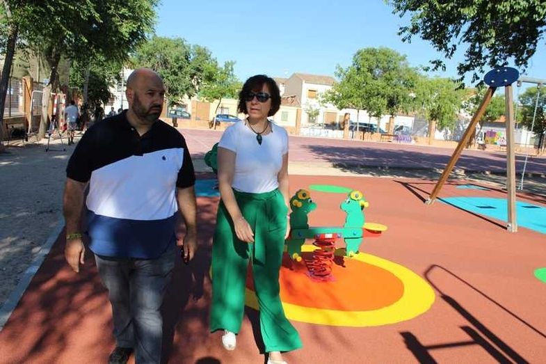 Esta misma mañana la alcaldesa de Alcázar de San Juan, Rosa Melchor y el concejal de obras y servicios y deportes, Javier Ortega, han visitado las nuevas instalaciones del parque infantil de la calle Salamanca.