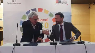 El presidente de RECAMDER, Jesús Ortega, ha firmado con el consejero de Desarrollo Sostenible, José Luis Escudero, el convenio de colaboración para el cumplimiento de los Objetivos de Desarrollo Sostenible en el Marco de la Red Local 2030 de Castilla-La Mancha.