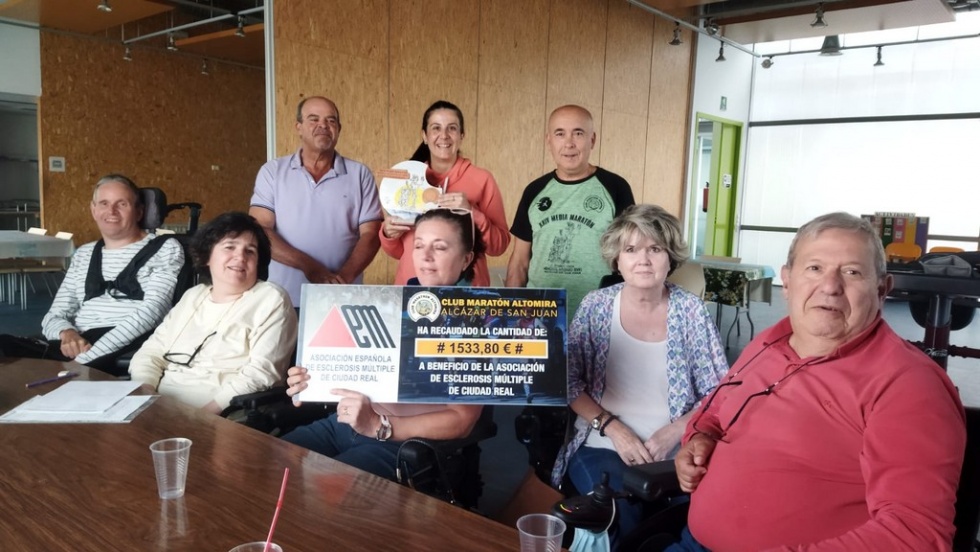 El Club Maratón Altomira de Alcázar de San Juan ha hecho entrega, a la Asociación de Esclerosis Múltiple de Ciudad Real, del dinero recaudado en la carrera solidaria incluida en la Media Maratón Memorial Mariano Rivas Rojano, celebrada el pasado 2 de octubre en la ciudad manchega.