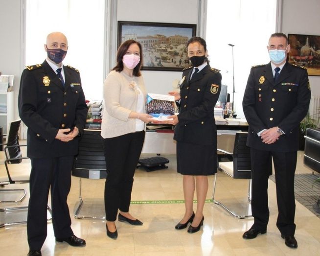 La entrega del libro ha tenido lugar en el despacho de Alcaldía, donde Rosa Melchor ha recibido al Jefe accidental de la Comisaría de Policía de Alcázar de San Juan, Francisco Miguel López Villena, al Inspector del área de Derechos Humanos e Igualdad, José Blasco y a la agente Alicia Dueñas.