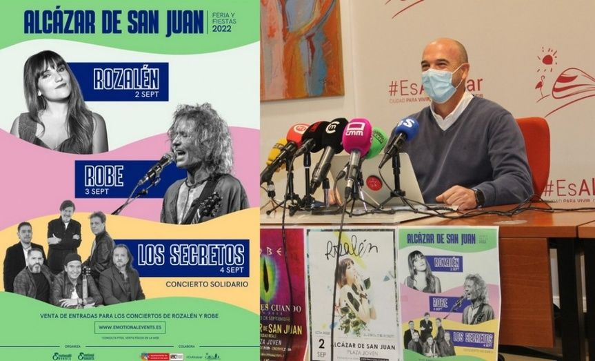 La artista castellanomanchega Rozalén, la mítica banda de Los Secretos y Robe (excantante de Extremoduro) serán los conciertos de la Feria 2022 de Alcázar de San Juan, en los que sólo el de Los Secretos será solidario, tal como ha informado en rueda de prensa el concejal de Festejos, Benjamín Gallego.