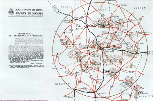 La relación de amor e interés de Eulalio Ferrer por la ciudad de Alcázar de San Juan se remonta a la época en la que estuvo funcionando la “Orden de los Escuderos Sanchos” a la que el publicista español residente en México perteneció. (Justo es reconocer, que aquella Orden de los Sanchos, con sus escasos medios y su mucha ilusión y trabajo, puso con sus diferentes actividades a Alcázar de San Juan en el mapa del turismo español e internacional y en aquella época consiguieron para nuestra ciudad la denominación geo-turística “Alcázar de San Juan, corazón de la Mancha” de la que tanto nos enorgullecemos y de la que el pasado día 4 de agosto se cumplían 56 años de su publicación en la Gaceta de Madrid (Aprobado por Orden Ministerial de fecha 11-07-1966).