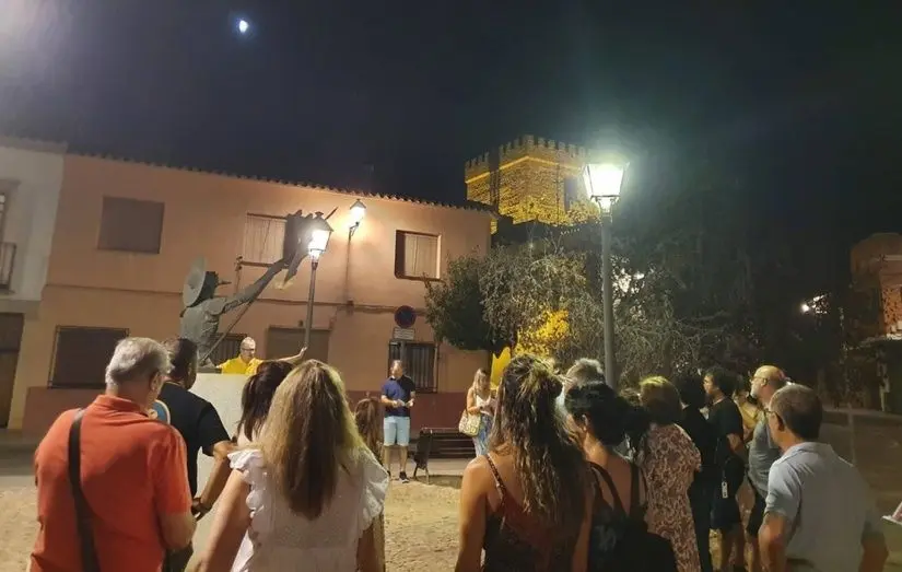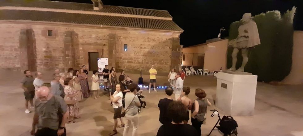 La noche del sábado 6 de agosto y dentro de la programación del Fin de Semana del Patrimonio (que el Ayuntamiento de Alcázar programó para los días 6 y 7 de agosto), ha tenido lugar una ruta Cervantin@lcazar noctámbula en la que miembros de la Sociedad Cervantina de Alcázar han mostrado a un numeroso grupo de personas -procedentes de diversos lugares de España y otras venidas de Chile- los lugares de nuestra ciudad que tienen vinculación con Miguel de Cervantes y su obra literaria.