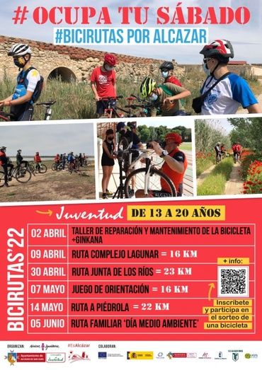 La Concejalía de Infancia y Juventud del Ayuntamiento de Alcázar de San Juan organiza un año más las Bicirrutas, una actividad enmarcada en el programa “Ocupa tu sábado” con el objetivo de ofertar ocio alternativo a jóvenes y adolescentes de 13 a 20 años de edad.
