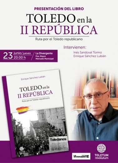 Este jueves, día 23 de junio, a partir de las 20:00 horas, el periodista alcazareño Enrique Sánchez Lubián presentará en La DiverGente, por segunda vez, su libro “TOLEDO EN LA II REPÚBLICA. Ruta por el Toledo Republicano”, editado por “Toletum Revolutum”.