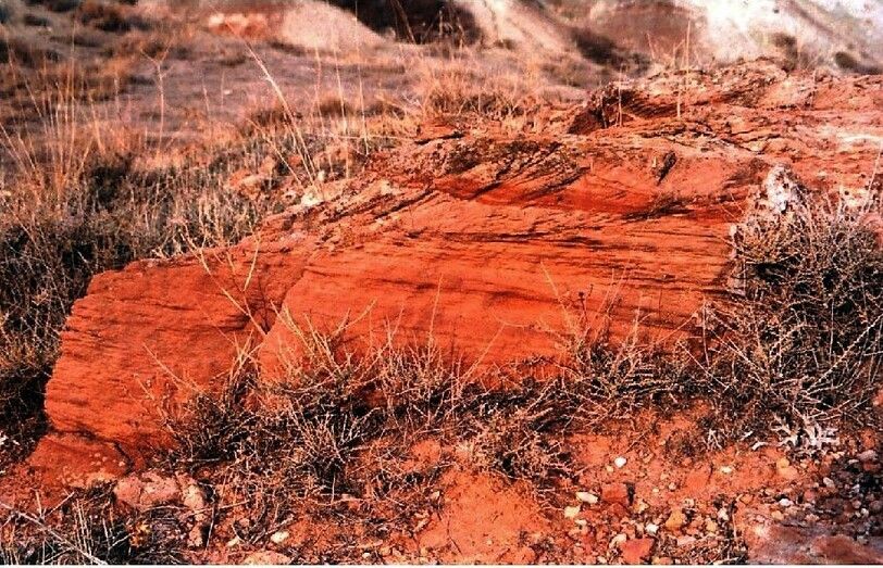 Fig. 14. Afloramiento de arenisca rojiza muy próxima a la cantera del templo. Es una arenisca rojiza con alto contenido en Sílice. Tomado de Carricondo Sánchez, FJ et al, 2008.