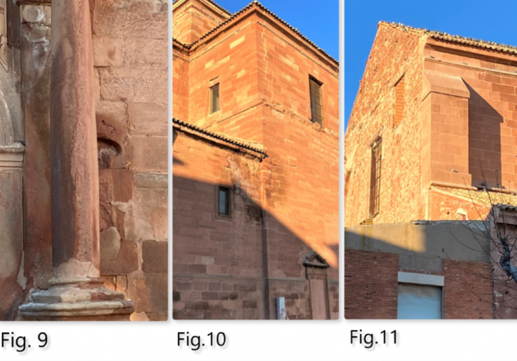 4º. Existe, además, una marcada erosión por las condiciones climatológicas de la zona de Alcázar, especialmente provocada por vientos, lluvia y cambios bruscos de temperaturas, pero estos no son específicos del templo de Santa Quiteria, son comunes a la enfermedad de la piedra sea cual sea su localización en las mismas condiciones de clima y orografía.