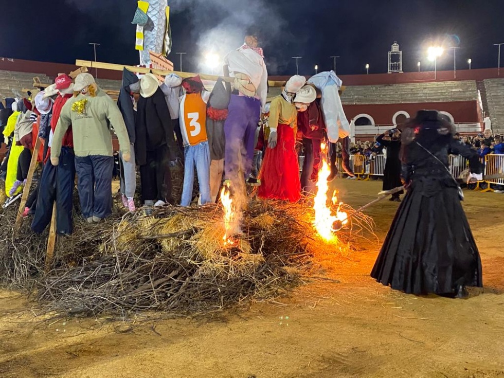 Alcázar de San Juan ha despedido esta tarde su Carnaval 2022 con la tradicional quema de la sardina y sardinada en la plaza de toros, donde multitud de vecinos y visitantes se han dado cita para dar su último adiós a la Señora Sardina, verla arder en la pira funeraria y apurar las últimas horas de fiesta saboreando alguna de los cientos de sardinas que se han asado y repartido entre los asistentes.