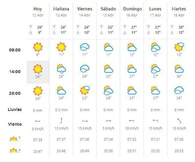 Hoy, miércoles, “operación salida” para muchos, se podrá disfrutar del sol y tiempo estable, aunque también de calor. Las temperaturas hoy siguen por encima de lo normal en la mayor parte del país. Alcanzarán los 19ºC en A Coruña, 20ºC en Barcelona, 22ºC en Castellón, 28ºC en Madrid y Murcia, 31ºC en Badajoz y hasta 32ºC en Sevilla, según previsiones de Eltiempo.es.