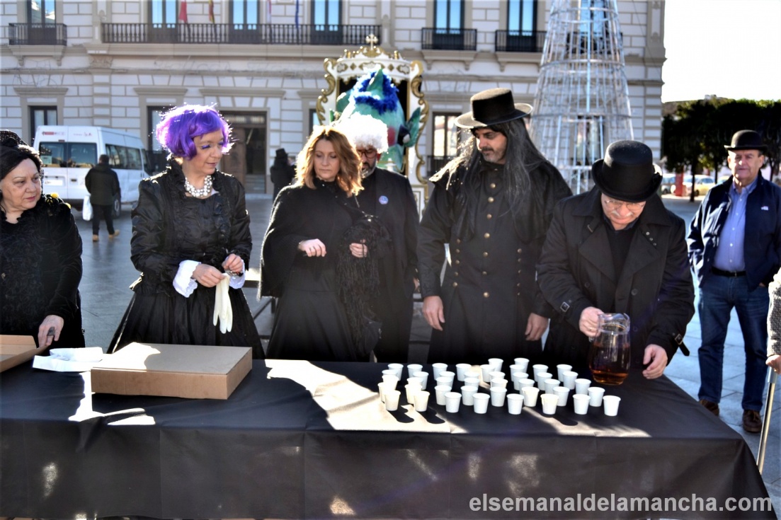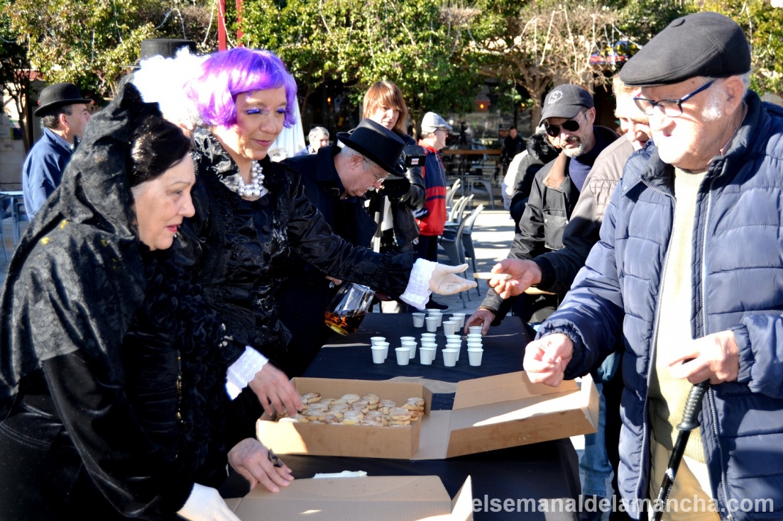 Presidiendo el duelo, ataviados de luto riguroso y divertidas pelucas, la alcaldesa, Rosa Melchor y el concejal de Festejos, Benjamín Gallego; además de los también concejales Gonzalo Redondo y Javier Ortega y representantes de distintos colectivos locales. Todos ellos encargados de repartir pastas y mistela entre los asistentes. Una forma dulce y típica de despedir el Carnaval que este año ha contado con buen tiempo y más participación que otras ediciones; y que, como marca la tradición, supone la antesala del entierro de la Sardina que tendrá lugar esta tarde.